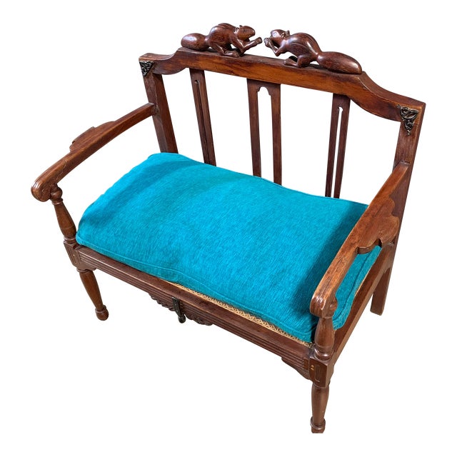 Sri Lankan Bench With Squirrel Motif And Cane Seat Chairish